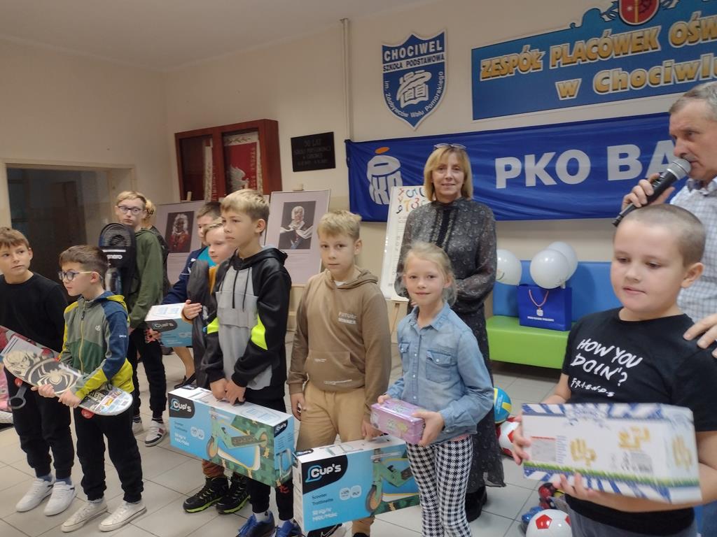 26 października w szkole odbył się apel Szkolnej Kasy Oszczędności, na którym opiekunowie SKO podsumowali ubiegłoroczną edycję konkursu oszczędzania. Działalność szkolnej kasy w Chociwlu została pozytywnie oceniona i zajęliśmy II miejsce w regionie zachodniopomorskim. Powód do radości mieli uczniowie najlepiej oszczędzający. Otrzymali oni nagrody rzeczowe, wśród których znalazły się m.in. deskorolki, hulajnogi, klocki Lego, piłki, książki, gry podwórkowe, latawce. W październiku, miesiącu oszczędzania, do grona „najmłodszych ciułaczy” przystąpili pierwszoklasiści. Witamy ich serdecznie.