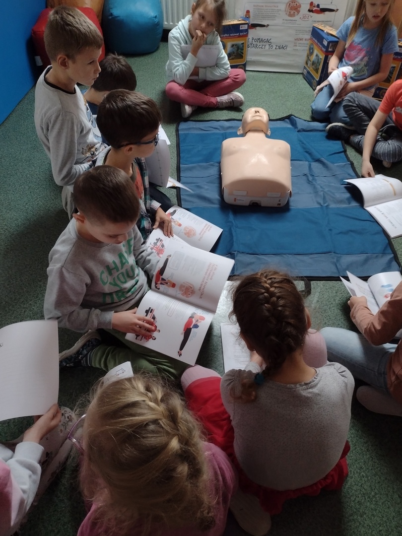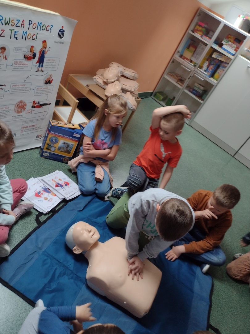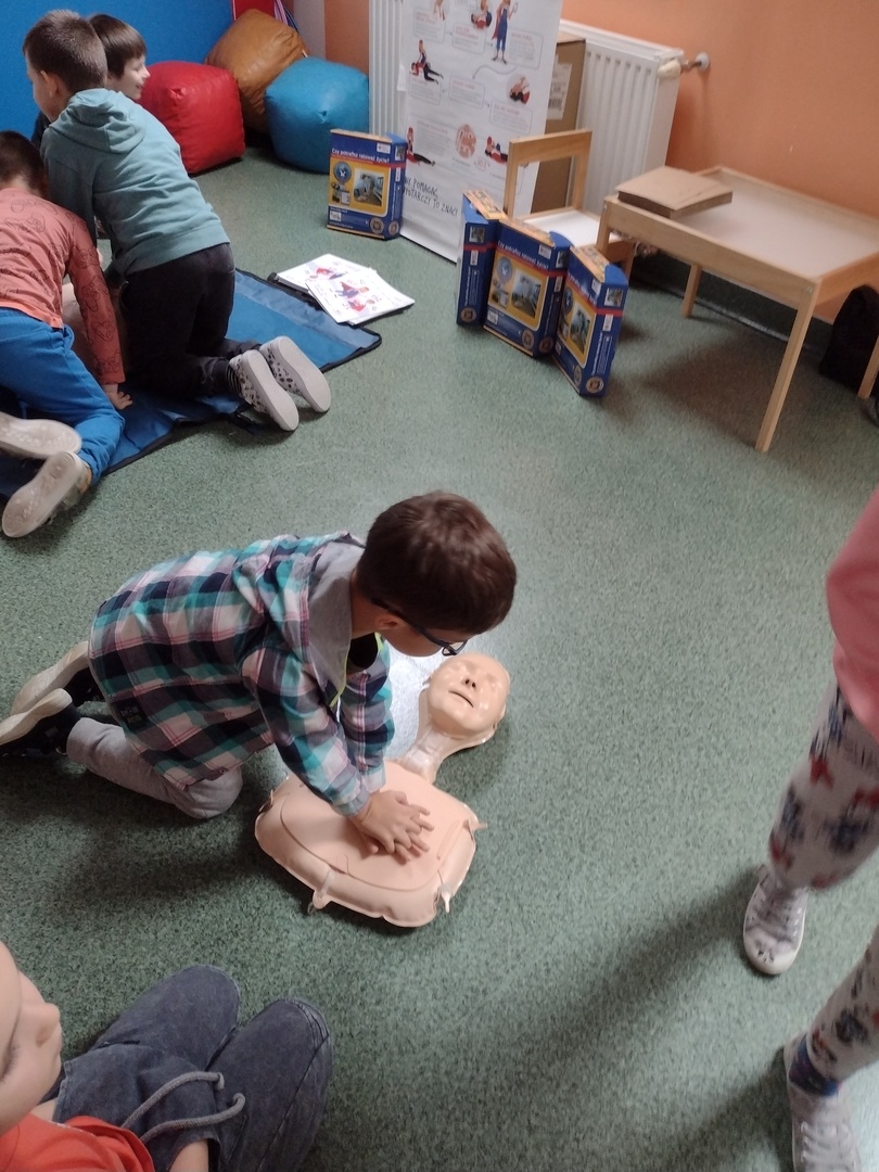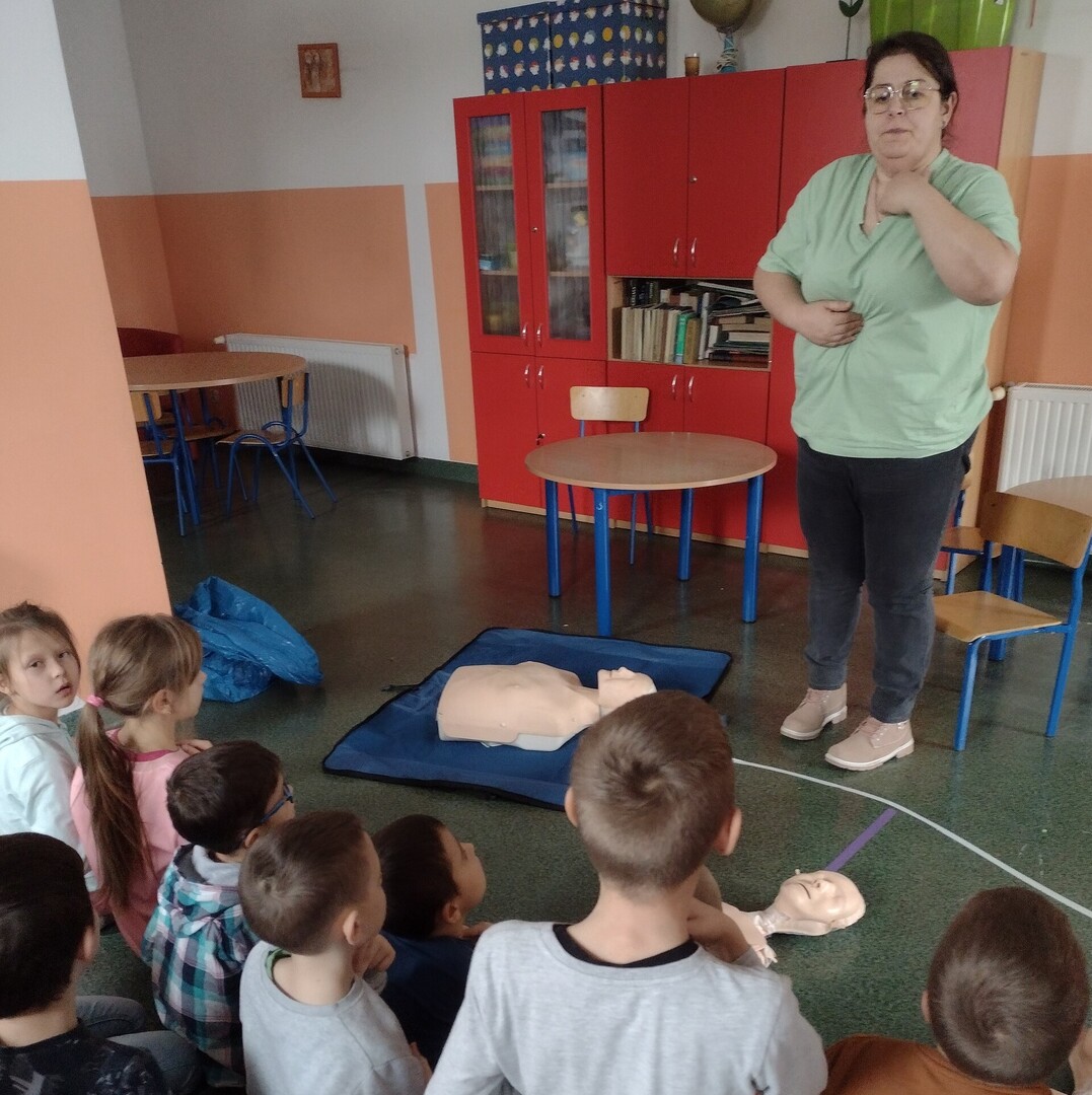 8 grudnia uczniowie z klasy 1 a rozpoczęli naukę udzielania pierwszej pomocy przedmedycznej osobie, która straciła przytomność. Najpierw rozmawiali o tym czym jest pierwsza pomoc i komu jej należy udzielić. Na zajęcia zaprosiliśmy panią higienistkę, która rozwiała wiele wątpliwości dzieci. Potem każdy próbował ćwiczyć uciski reanimacyjne na fantomach Ania. Na lekcji wykorzystaliśmy materiały opracowane przez bank PKO BP - poradnik "Odkryj moc pierwszej pomocy". Jak na pierwszy raz poszło całkiem dobrze.