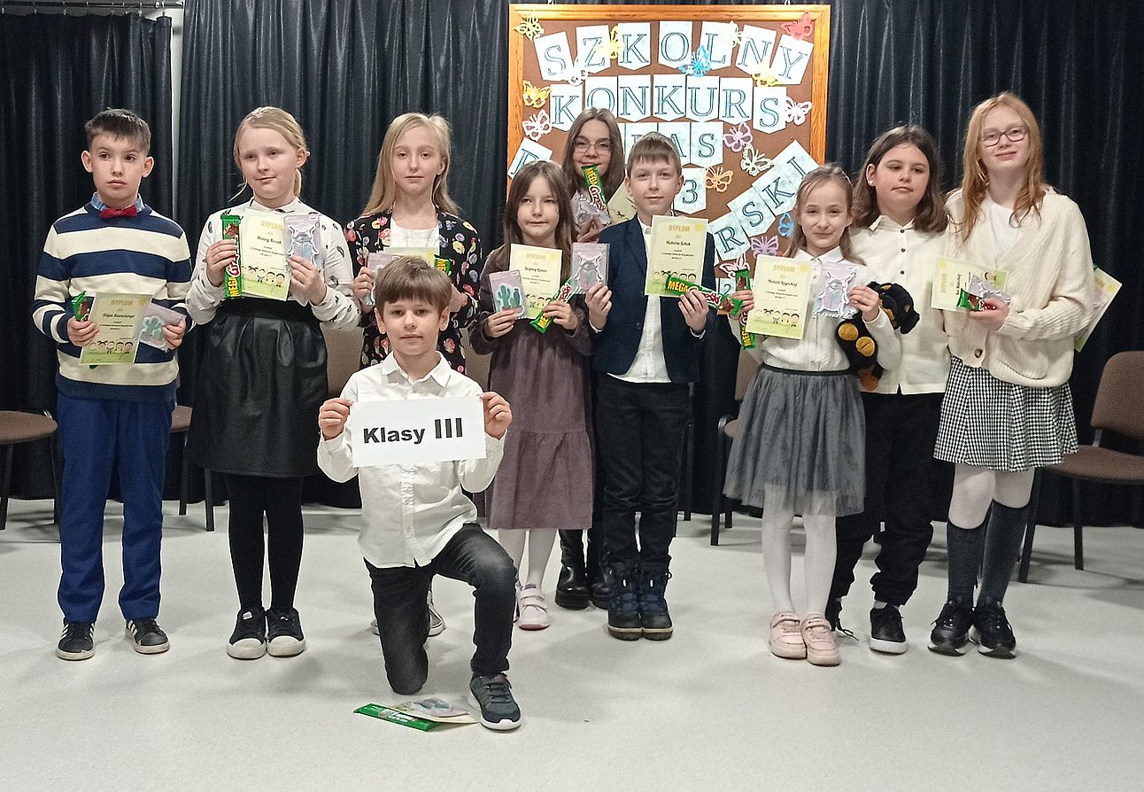 Szkolnego Konkursu Recytatorskiego dla klas I - III.