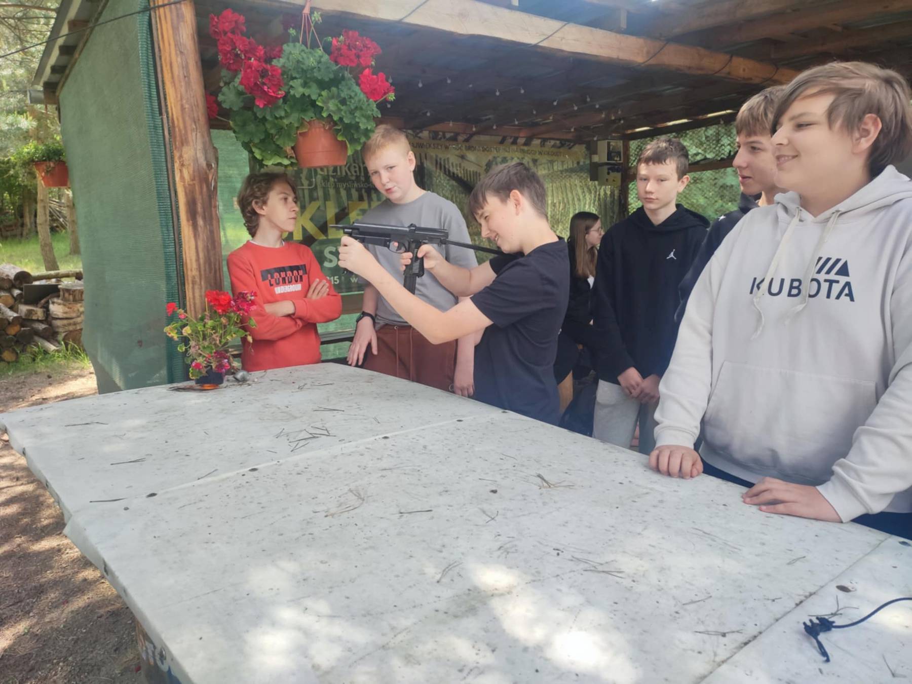 Niezwykle ciekawe zajęcia prowadzone przez Pana Roberta Kawę objęły przede wszystkim przygotowanie teoretyczne w zakresie bezpiecznego obchodzenia się z bronią oraz podstawy obsługi broni. Ponadto w części praktycznej chętne osoby mogły poćwiczyć strzelanie pod kierunkiem instruktora. Uczniowie oprócz pozyskania przydatnej wiedzy spędzili miło czas na łonie natury przy ognisku.
