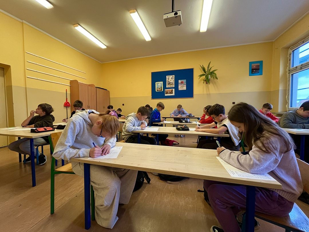 Dnia 24.10.2025r odbył się konkurs matematyczny pod hasłem ,,Szkolny rachmistrz klas piątych”, którego celem było propagowanie poprawnego liczenia. Polegał na tym, aby sprytnie obliczyć podane działania. Obejmował cztery podstawowe działania takie jak dodawanie, odejmowanie, mnożenie i dzielenie. Można było uzyskać 32 pk. W konkursie wzięło udział 18 uczniów klas piątych. Wszyscy uczniowie zostali nagrodzeni ocenami, pochwałami oraz upominkami. Zwycięzcom gratulujemy, a wszystkim uczestnikom dziękujemy za udział w konkursie.