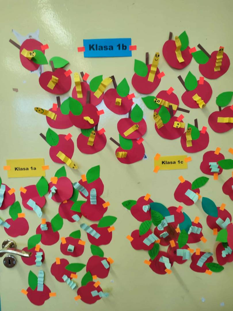 i smakowanie. Rozwiązywały zagadki, labirynty i rebusy dotyczące tematyki projektu. Na zakończenie wykonały prace plastyczne z elementów-jabłko z robaczkiem.
